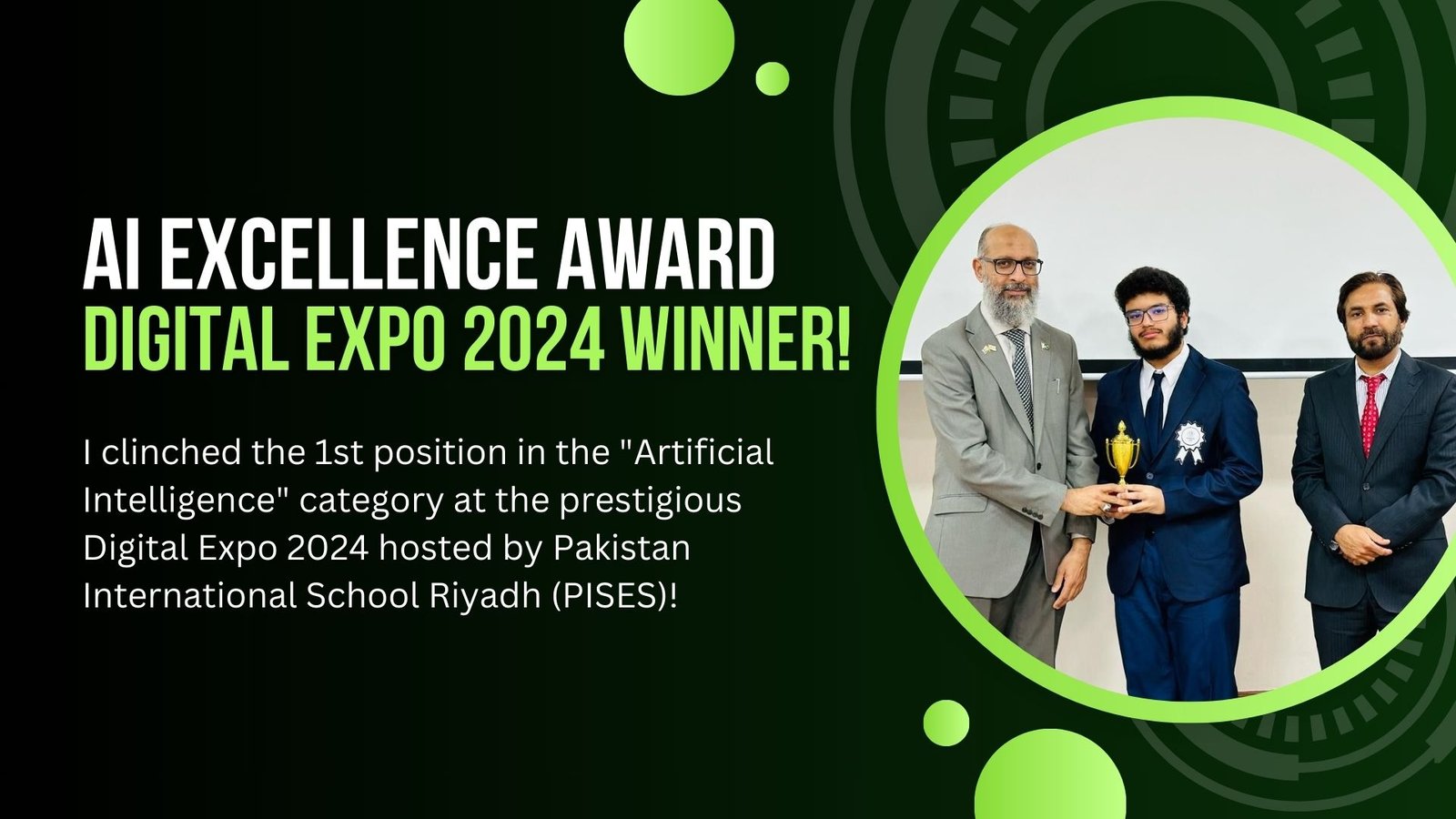 Secured 1st Place in the “Artificial Intelligence” Category at the Prestigious Digital Expo 2024, Hosted by Pakistan International School Riyadh (PISES)